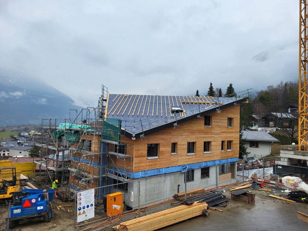 Neubau von zwei Mehrfamilienhäuser in Holz. Start Montage Holzbau.