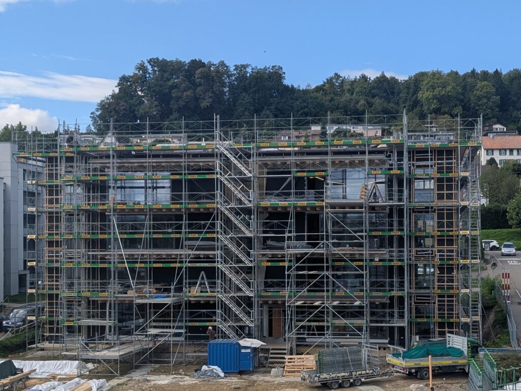 Neubau Mehrfamilienhaus in Turgi in Holz. Fertigstellung Rohbau